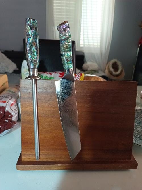Drží nože v perfektní kondici. Bohužel se povoluje v závitu, ale vyřešil jsem gumičkou.
