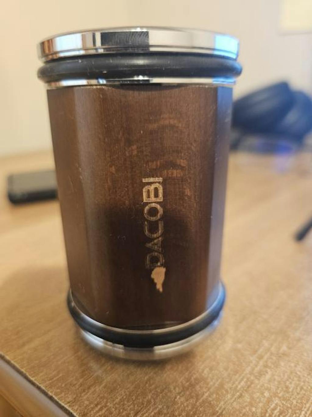 - material Acacia in butucul cilindric care prinde pietrele abrazive 1 stea.. Lemnul nu este de Acacia. Poate fi un PAL/MDF/lemn clasic. Culoarea aceea roșie frumoasă sa decojit. Butucul cilindric are așchii mici la capeți.
