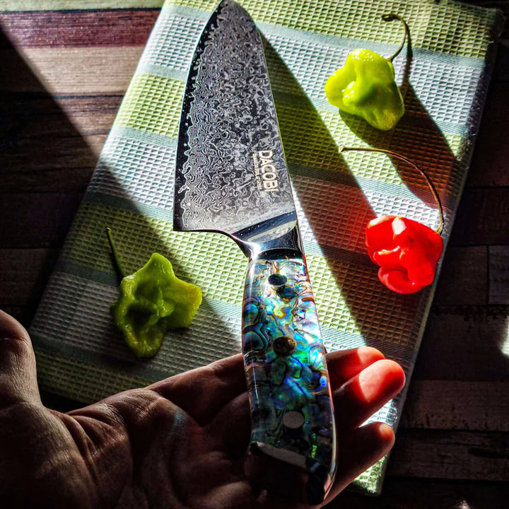 A joy to look at, a pleasure to use and a pride to own! Craftsmanship oozing from every layer of the Damascus’s steel and the gorgeous yet sophisticated handle, balanced and sharp , thank you to my partner for gifting me an amazing tool for my kitchen extravaganza !